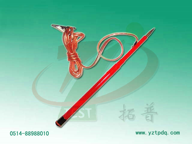 2. 把配制好的接地線插頭插入直流高壓放電棒的頭端部位的插孔內(nèi),將地線的另一端與大地連接,接地要可靠。