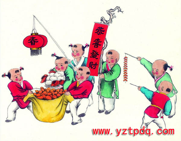 送灶以后,就真正開始了年貨的采購與囤積,貼春聯(lián)、貼門神、貼福字、貼年畫,這些寓意吉祥的大紅色的紙張給新年帶來了無處不在的喜氣與熱情,往往舊式有前后門的房屋會(huì)在前門貼春聯(lián),后門貼門神畫——唐朝初年的兩位大將秦叔寶和尉遲公。據(jù)說大門上貼上這兩位門神,許多妖魔鬼怪都會(huì)避而遠(yuǎn)之,而小孩子們則是對這兩位形象頗有點(diǎn)猙獰的門神既怕又敬、既畏又尊,很是有趣。家里屋內(nèi)的墻壁或房門上貼得都是些喜氣洋洋的年畫,比如麒麟送子、和氣娃娃等,現(xiàn)在的家庭大多以一卷卷漂亮精美的掛歷取代了各種花花綠綠的年畫,而“福”字卻貼得多了起來,那是因?yàn)樵絹碓蕉嗟纳碳覀冊敢庠谛履曦浧分袏A上一兩張“福”字作為贈(zèng)品,“福”字得倒著貼在門或窗戶上,這樣過路的人們看見了,會(huì)指著說“福”倒了,那么福就真的要到了哦。