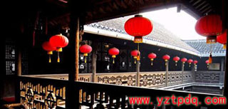 盧氏鹽商住宅坐落于康山文化園旁,臨街朝南的大門氣派而考究。門楣上的磚雕異常精美,雖經滄桑歲月,但仍可辨出磚雕上神態(tài)各異的人物活潑靈動,栩栩 如生。置身其中,淮海廳、蘭馨廳、涵碧廳、怡情樓,廳廳相連,廳堂闊大,可設宴百席,氣派非凡。漫步宅內,從第一進到第四進,天井兩側分布著小型花園, 假山、花草、布局風格各異,構思精巧。深入后院,意園里盔頂六角亭、石船舫、水池等相映成趣。盧宅前后進深達百余米,占地面積6100多平方米,是反映 揚州鹽文化的重要古跡。從外表看古宅青磚黛瓦與一般住宅無異,但置身其中,一種“藏富不露”的恢宏之氣撲面而來。經過修復,不但古建筑獲得了新生,往日 鹽商的富庶也得以重現(xiàn)。