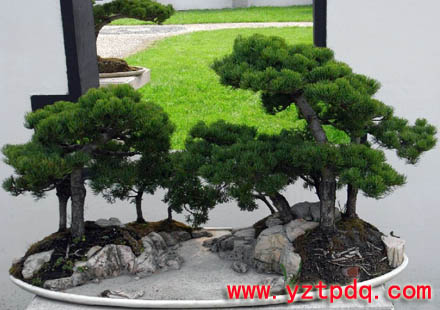 揚(yáng)州盆景分樹樁盆景、山水盆景和水旱盆景等。特別是觀葉類的松柏榆楓、瓜子黃楊等樹樁盆景,可謂獨(dú)樹一幟。揚(yáng)派盆景受揚(yáng)州明清時(shí)期畫風(fēng)的熏陶,并受古城造園、養(yǎng)花傳統(tǒng)的影響,形成了自己獨(dú)特的風(fēng)格。它仿效名山大川,借鑒山水名畫,方寸之間,意境闊大。造型嚴(yán)謹(jǐn)而富有變化,清秀而不失壯觀。“一寸三彎,功在剪扎”。品種多達(dá)五、六十種,在國(guó)內(nèi)外享有盛譽(yù)。