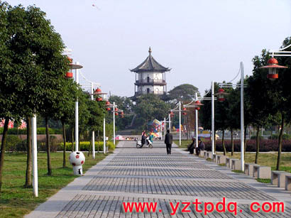 廣場(chǎng)設(shè)計(jì)遵循“以人為本、以水為源、以綠為美”的原則,注重高郵水鄉(xiāng)的地域特色。在整體布局上采用“一軸二面三點(diǎn)”,即以“景觀主軸線,蝶池小面、蝶園主廣場(chǎng),入口商業(yè)休閑廣場(chǎng)、親水廣場(chǎng)、宋城墻魁星閣古跡”為主體,水上平臺(tái)和引橋流水融為一體,使人感受到水鄉(xiāng)特有的水性的滋潤(rùn)。廣場(chǎng)綠化設(shè)計(jì)充分體現(xiàn)“花香蝶自來”的意境,種植花草樹木近40個(gè)品種,其中有櫸樹、香樟、桂花、梅花、天堂草等,錯(cuò)落有致。駐足看,廣場(chǎng)綠草如茵,彩蝶飛舞,彩色噴泉千姿百態(tài);徐行聽,流水淙淙,舞曲翩翩,綠樹叢中鳥啼鶯囀,讓人心曠神怡。