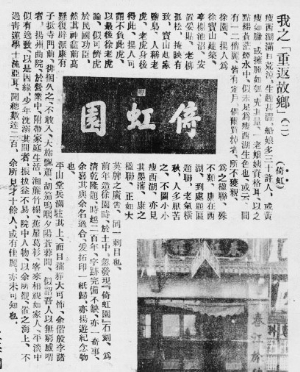 上世紀(jì)二十年代,素有“副刊圣手”之稱的老報(bào)人張慧劍游揚(yáng)州,也寫了一篇散文“揚(yáng)州游記”,收錄于上海世界書局1929年6月出版的《湖山味》,文中提到:“揚(yáng)州人因?yàn)檫@是蓋了紀(jì)念徐寶山的,因人及園,徐園遂也成為一個(gè)名勝了。當(dāng)我踏到徐園的盡頭處,看見墻上嵌有一塊碑石,大書曰:倚虹園。我有一個(gè)死掉的朋友畢倚虹,我又有一個(gè)常去吃飯的所在倚虹樓,我還有一個(gè)最歡喜聽她唱白盔白甲白旗號的歌女倚虹閣;倚虹園三字便合我如同他鄉(xiāng)遇故知一般,毫不客氣地鉆進(jìn)我記憶里。”