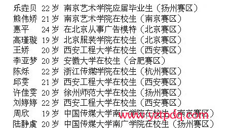 華利•2011中國揚州美女大賽12強名單