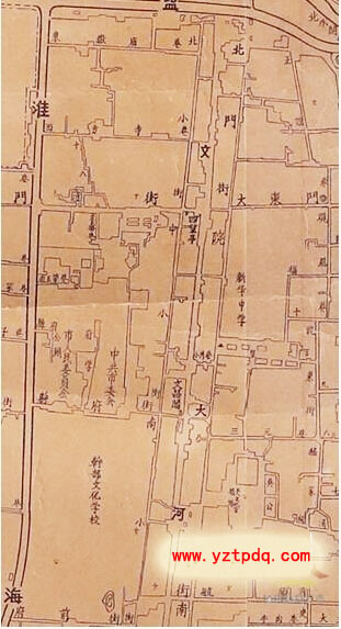 小編查找志書中地圖發(fā)現(xiàn),位于府衙、縣衙的東面,從舊城北門水關(guān)至南水關(guān)的這段市河,沿河附近設(shè)有縣學(xué)(現(xiàn)揚(yáng)大附小址)、文魁樓(今四望亭)、文廟(今政協(xié)),河上架有文津橋,橋上有文昌閣,上曾懸有“邗上文樞”匾額……揚(yáng)州的各類文化殿堂都緊臨這段市河。相傳在古代這段市河被視為文脈,因此這段市河在民間被稱為“文河”。