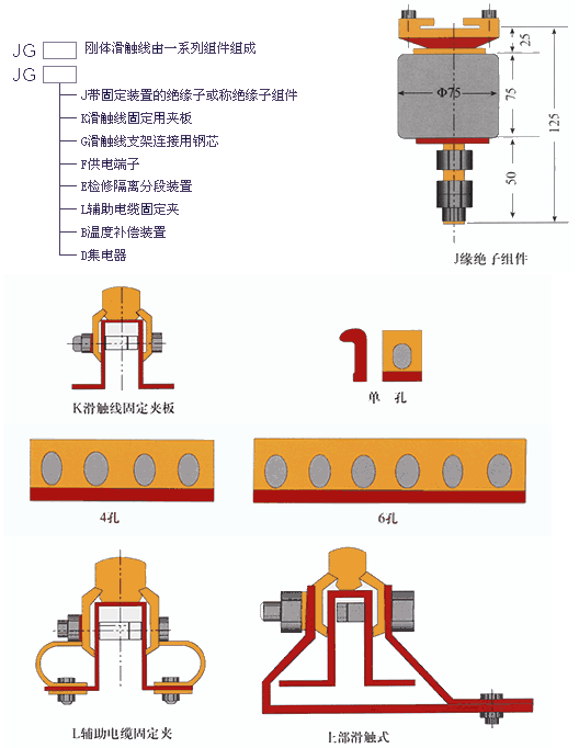 滑觸線分為單線式和雙線平等饋電式兩種,除雙線平等式以JGH-□II表示外,單線式不另加表注,其斷面如下: